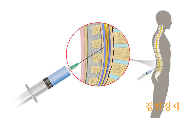 환자가 옆으로 웅크리고 누운 자세에서 등을 통해 가늘고 긴 바늘을 찔러 채취