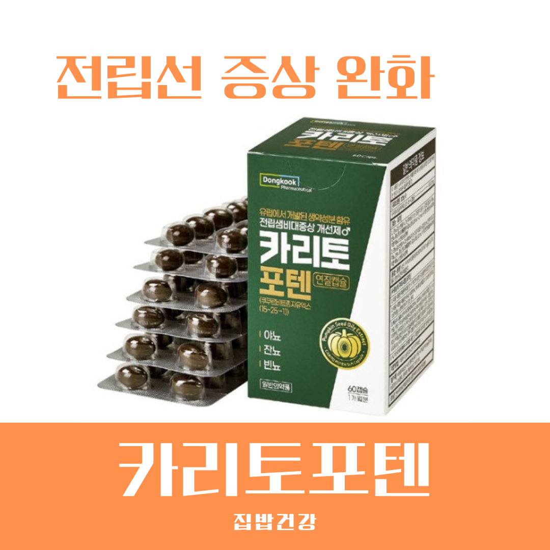그래서 이번 시간에는 전립선 건강에 도움이 되고 증상을 완화하는 하는데 도움이 되는 동국제약 카리토포텐에 대해 알아보고 효능 및 부작용 그리고 성분의 약리작용, 약국 가격 등을 알아보려고 한다.
