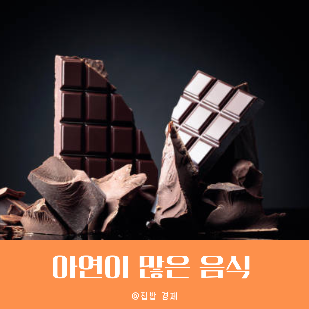 카카오 함량이 높은 다크초콜릿에는 30g에 약 1mg 정도가 포함되어 있으며 카카오 함량이 높을수록 아연 성분도 풍부해지는데요