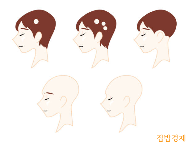 일반 탈모와 구별하는 수 있는 방법은 탈모 부위와 탈모 아닌 부위가 명확하게 동그랗게 표시가 나타나는 것으로 구분할 수 있으며 두피 색깔이 약간 붉은빛을 띠면서 광이 나는 듯 반질거리는 느낌이 나는데요