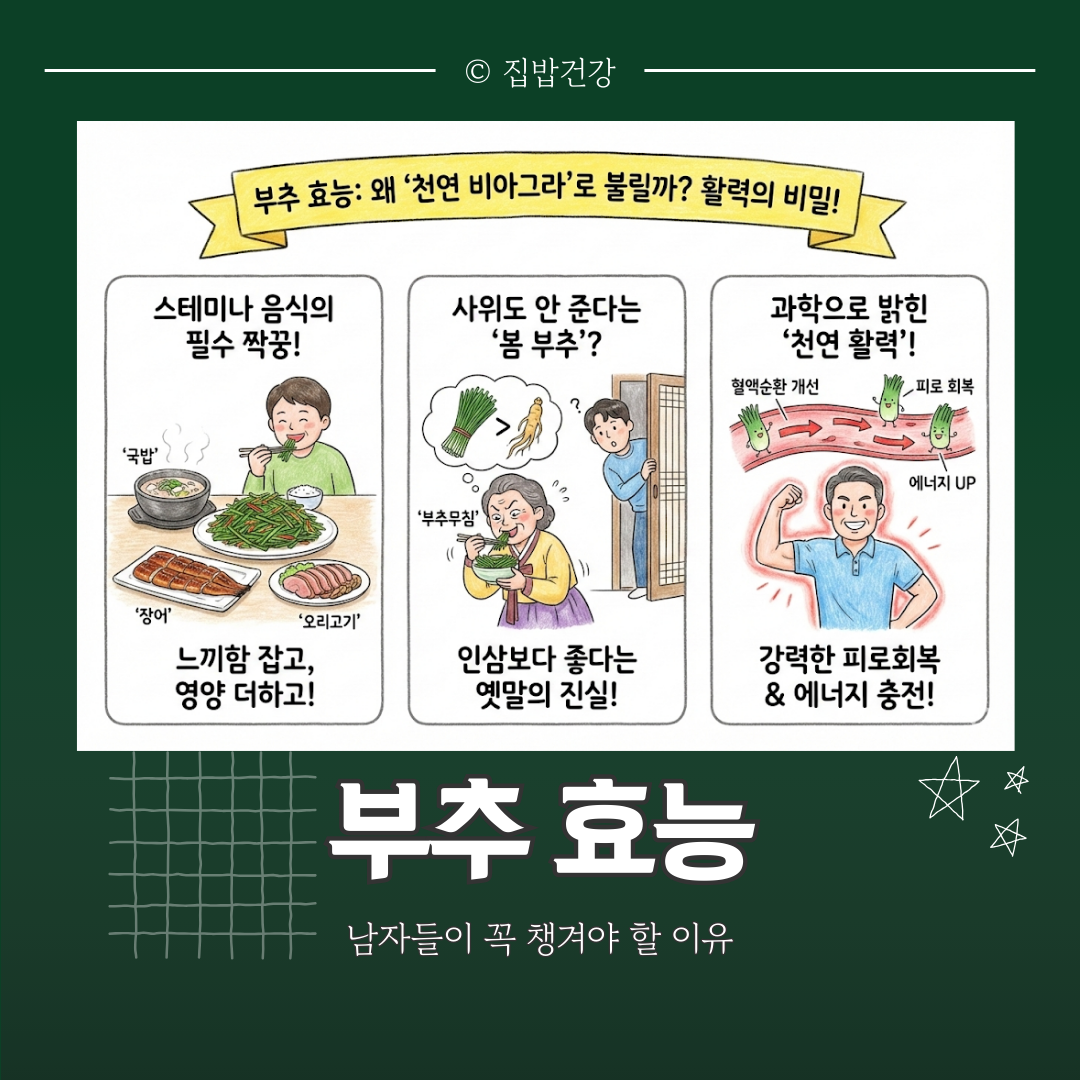 비싼 영양제도 좋지만, 가장 좋은 약은 언제나 밥상 위에 있습니다. 부추 효능으로 일상의 활력을 꽉 채워보시길 바랍니다.