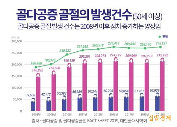 세계보건기구(WHO)에서 골량의 감소와 미세구조의 이상을 특징으로 하는 전신적인 골격계 질환으로 정의하고 있는데요