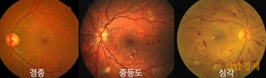-망막출혈반, 삼출물의 정도와 신생혈관 유무를 확인