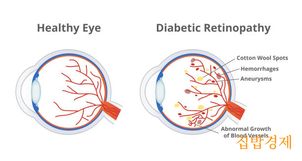 당뇨병의 가장 흔한 합병증 가운데 하나로 시각 정보를 받아 시신경으로 전달하는 망막에 영양소와 산소를 공급하는 혈관이 높은 혈당 때문에 손상되어 혈액과 체액이 흘러나와 망망 조직이 부풀어 오르고 시야가 흐려지는 질환을 말하는데요