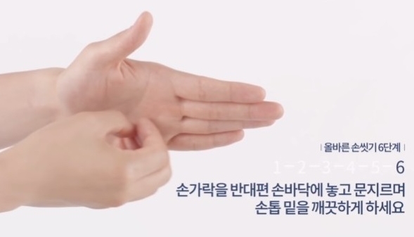 ✔ 손가락을 반대편 손바닥에 놓고 문지르며 손톱 밑을 깨끗하게 하세요